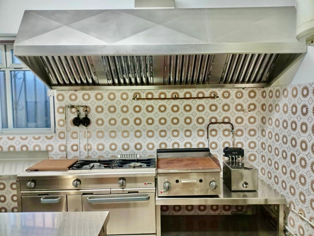 🍽️ Cocina totalmente equipada, prácticamente a estrenar (excepto cortadora de fiambre), con maquinaria industrial y gran capacidad de trabajo.
